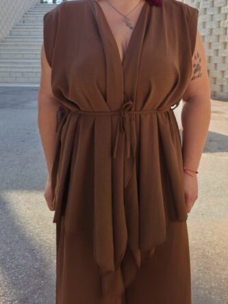 Conjunto pantalón palazo y blusa kimono color Marrón